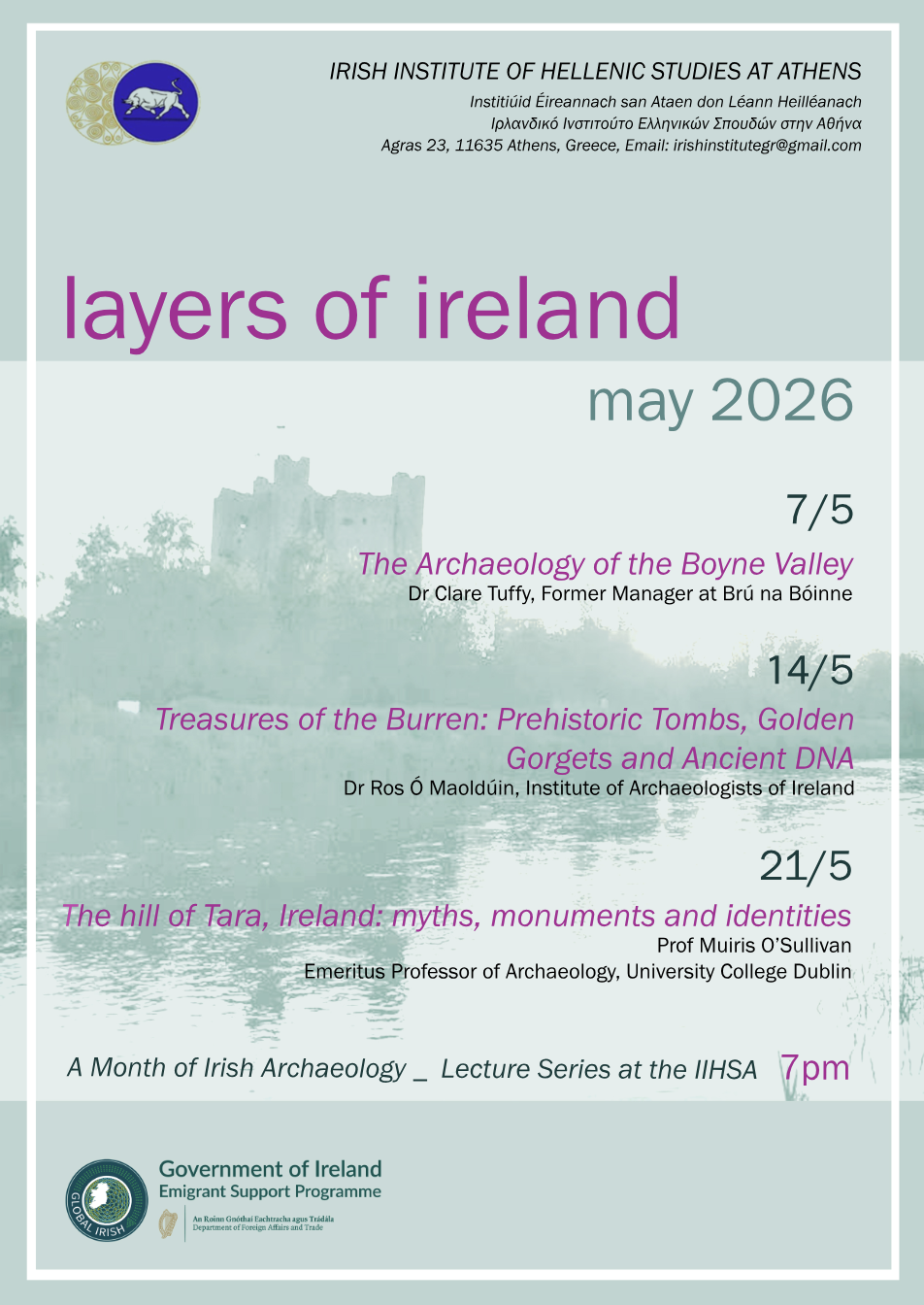 We are very pleased to share the next chapter of our initiative, “Sharing Ancient Irish Heritage with the Irish Diaspora in Greece”: a series of open public lectures on Irish archaeology, taking place throughout May 2026 under the overarching theme “Layers of Ireland.